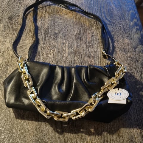 Stillig skulderveske i god stand, svart farge, nesten ny, flere lommer, størrelsen er 22x15cm.