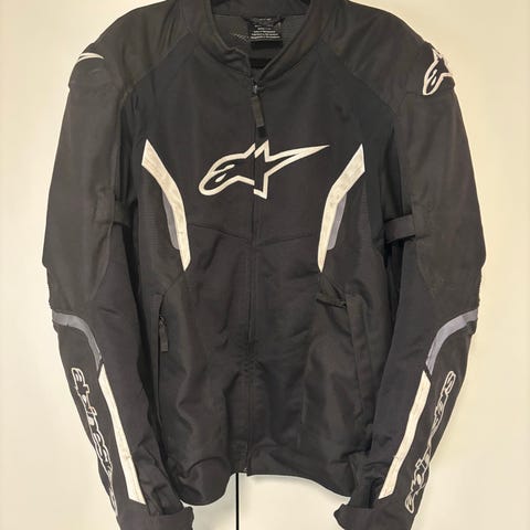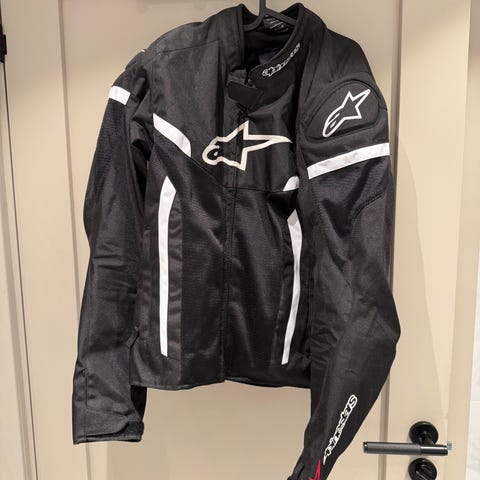 Alpinestars GP Pro Jakke motorsykkeljakke i svart farge, laget av polyester materiale. Jakken er designet for og har flere lommer, ventilasjonssystem og beskyttelse for motorsykkelbruk. Str small, har blitt brukt veldig lite har vokst ut av jakken.