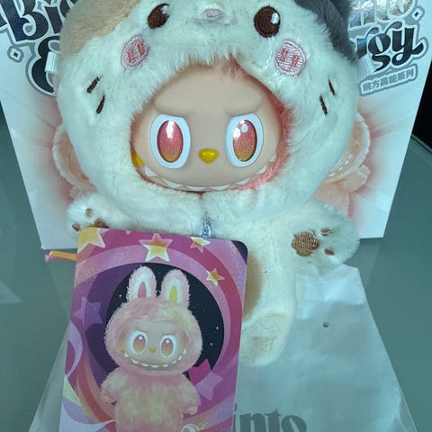 Selger ekte Labubu følger med kort men uten boks. Kun stått i skapet og å vært brukt. Tilstand som helt ny