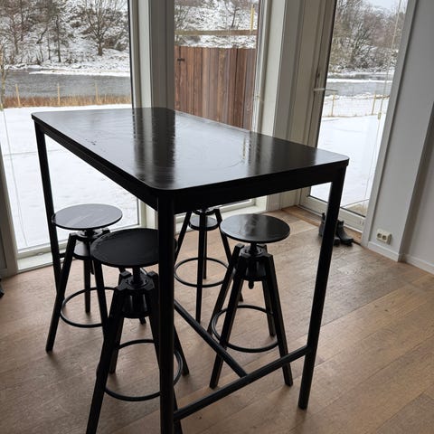 Selger tre pent brukte barkrakker av typen Ikea Bergmund. Trekket er grått, og kan enkelt tas av for vask i vaskemaskin. Rammen (bena) er eikemønstret, med forsterkning der man hviler bena. Selges samlet.