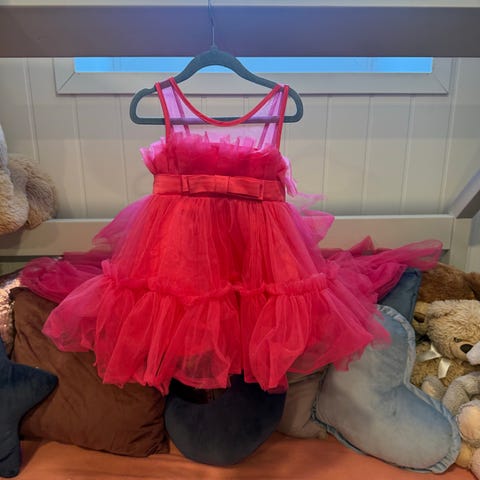 Nydelig prinsessekjole i eksklusiv tyll med et vakkert fall og nydelig glitterbelte i midjen.