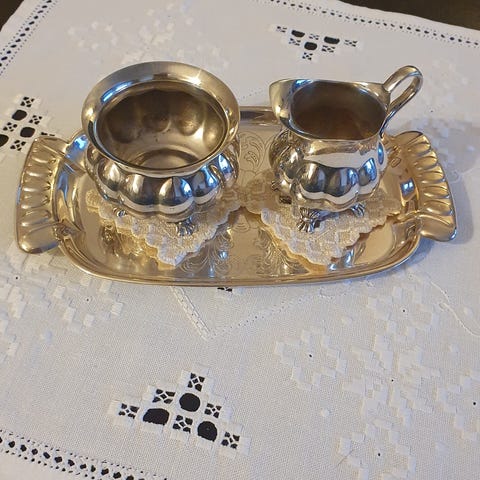 Drysse til sukker og kanel til grøten. Har 2 stk .meget pene og gode i bruk i krystall med lokk I sølvplett.