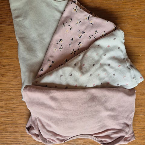 Säljer tre plagg, gott brukt men med mycket bruk igen. Finner inga hål men det är missfärgning och fläckar från en kreativ eftermiddag 🎨 Säljes därför billigt till 50kr/plagg. Se bilder för anmärkningar & storlekar. Den rosa med rev är 8-9 år men allt är brukt samtidigt!