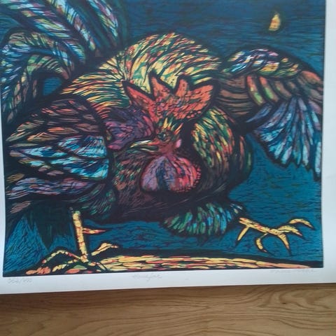 Nummerert, signert og mål er 96 x 75 cm med rammen