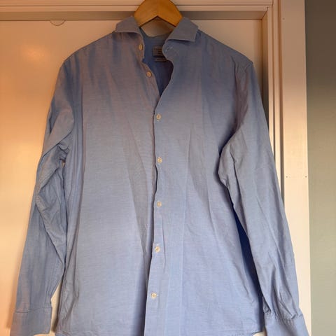 Moods of Norway skjorte i størrelse M, lys blå farge. Skjorten har lang arm og knappelukking foran.