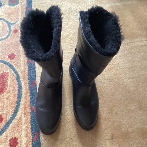 ECCO støvler i svart skinn, størrelse 37 for dame. Støvlene har glidelås på innsiden for enkel av- og påkledning. Sålen har mønster for bedre grep. Passer til daglig bruk.