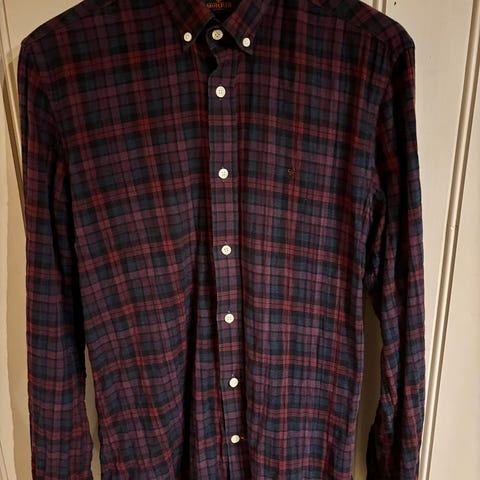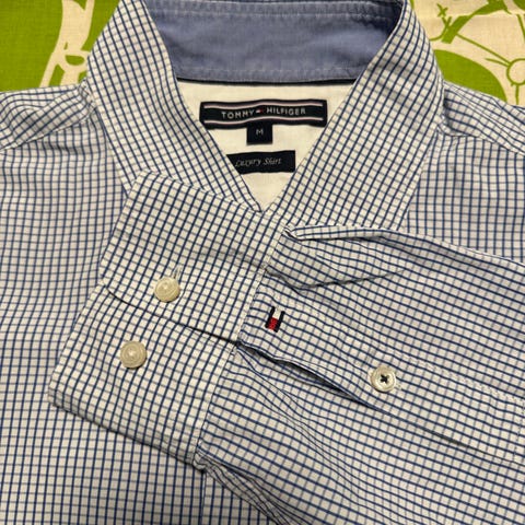 Tommy Hilfiger skjorte i størrelse M med flerfarget rutemønster. Langermet design med knappelukking foran og brystlomme. Laget av lett og pustende materiale, egnet for hverdagsbruk.