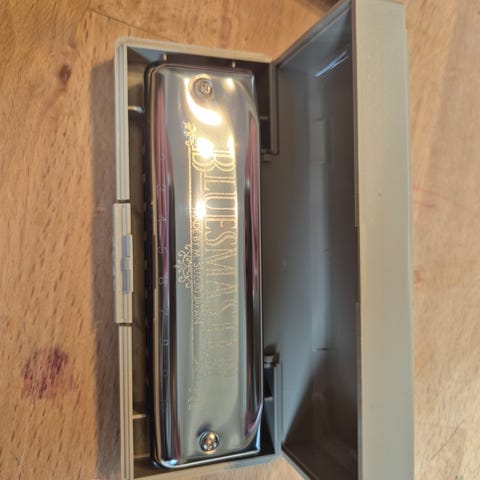 Suzuki Bluesmaster Bee munnspill i gul farge. Instrument laget av plast og metall med 20 hull. Passer for nybegynnere og er designet for blues og rockemusikk.
