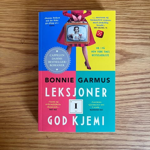 Bonnie Garmus Leksjoner i god kjemi er en bok for den som vil lese en morsom, smart og velskrevet roman full av pågangsmot. Språket er perfekt og flyter lekende lett, dette er helt enkelt en skikkelig godt oversatt, underholdende roman.
