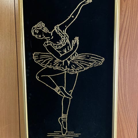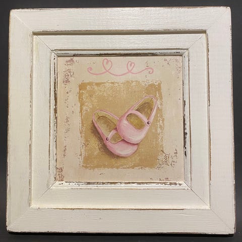 Sort ballerinasko bilde, innrammet. Mål: 24x29 cm.