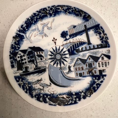 Veggfat med plattformmotiv. Liste over operatører på bakside, Produsert av Porsgrund. Diameter 27 cm. Meget god stand. Kan sendes. Selges for 50kr pr stk.