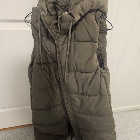 Primark Primark Cares vest i størrelse L for kvinner. Vesten er grå og har hette med snøring. Den er uten ermer og har glidelås foran. Materialet er polstret, noe som gir varme og komfort. Passer til bruk som ytterplagg i kjøligere vær.