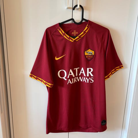 2015 hjemmetrøyen til AS Roma i størrelse M, designet for menn. Trøyen er hovedsakelig rød med oransje detaljer på ermer og sider. Laget av pustende materiale egnet for sport og fysisk aktivitet.