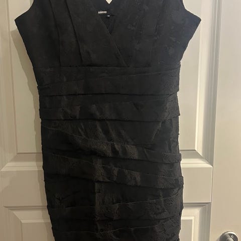 Elegant svart kjole med krystallpyntet halslinje ✨
