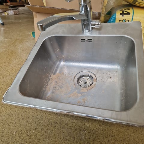 Med blandebatteri og kran. Må hentes.