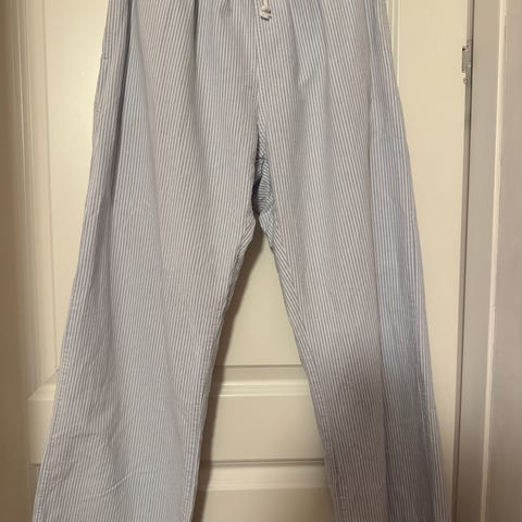 2 Stripete, vide bukser i sort / hvitt med strikk i livet. En i str. XL og en i L. 50 kr. Pr stk