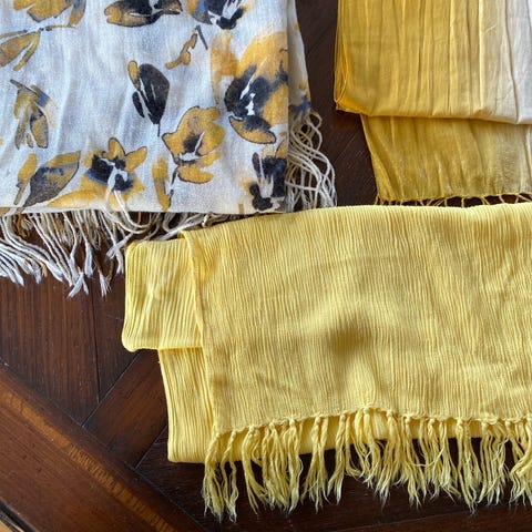 Sort og sølvfarget. Halsen ikke brukt. Skjerfet i sølvfarge hadde en løs tråd som er festa. Selges billig av den grunn. Kr 50 for alle tre. Kan sende