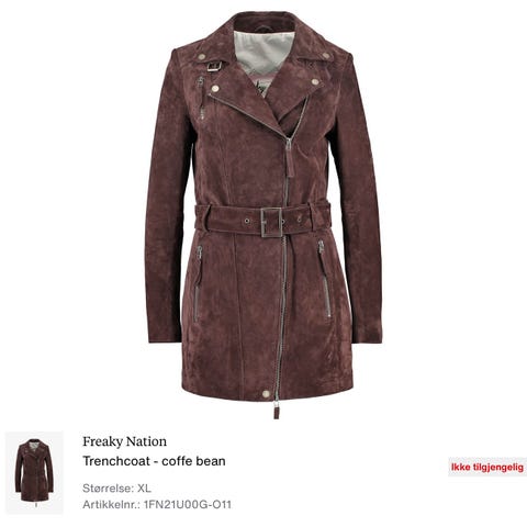 💵 Alle nyere søk etter 100 % skinn viser at miniskjørt selges for 2500 kr eller mer. Ingen lager lange trenchcoats som denne i sustainable materialer som varer mer enn én sesong. Denne er unntaket.