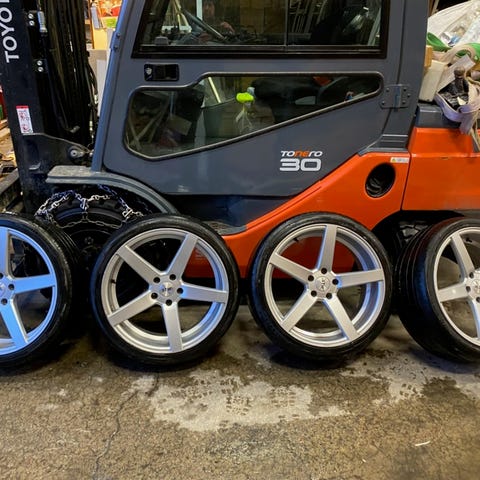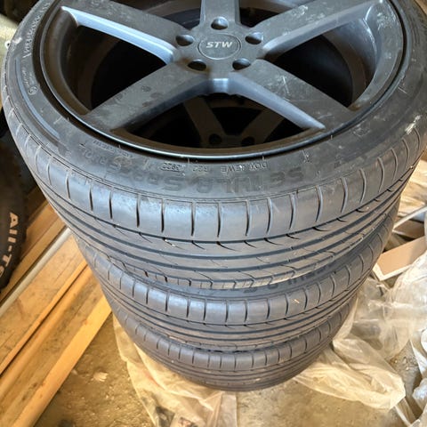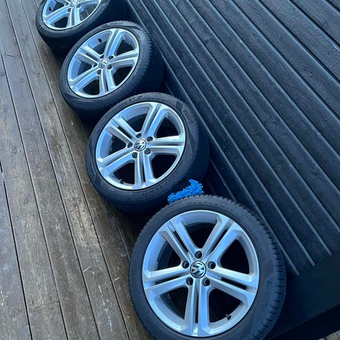 Volkswagen felger med dekk i størrelse 255/45 R20. Fire felger med tilhørende dekk, brukt til VW Transporter T5. Felgene har boltsirkel 5x120 og skal også passe til Amarok og Touareg. ET45.