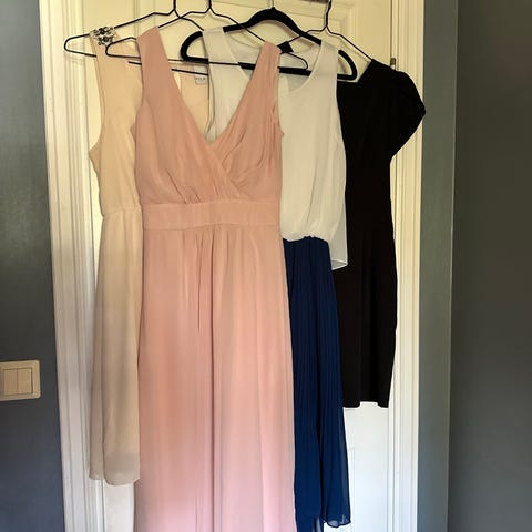 Klespakke med kjoler. Alle er veldig pent/lite brukte. Noen er litt skrukkete, men har ellers ikke funnet noen anmerkninger på noen av dem.