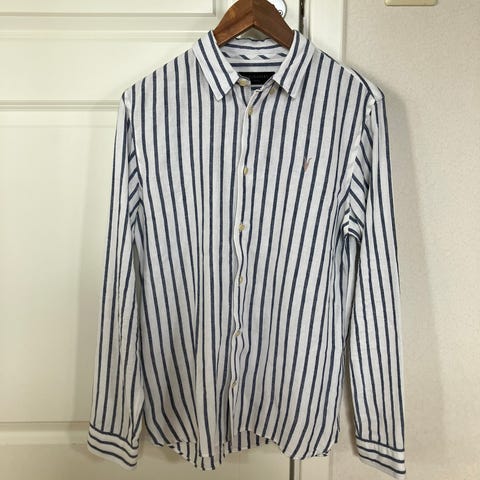 Pent brukt skjorte fra All Saints selges. Det første bildet er bare for å vise fit. Den jeg selger er mer beige i fargen.