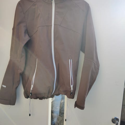 Softshell jakke med glidelås fra 24Outdoor. 2 lommer med glidelås. Str 40.