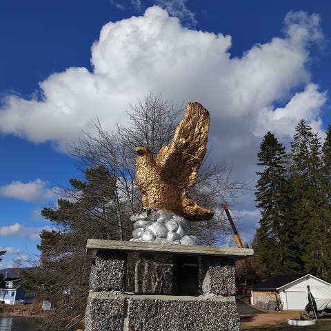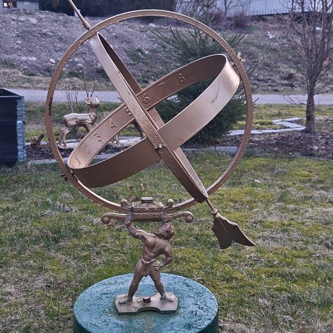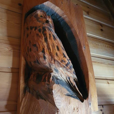 Håndlaget flott skulptur av en veps. Kan brukes ute og inne. Har også belysning. Laget av kunstner G. Neergaard. Egnet for bruk som dekorasjon i hjem eller hage. Høyde skulptur inkl sokkel ca 160 cm
