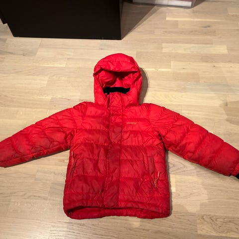 Dunjakke er str 104 men oppleves romslig, brukt samtidig med settet til sønnen var 5.5 år.