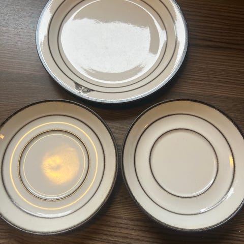 Det er gullkant rundt fatene. Og dekor og mønster på fatkanten.