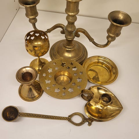 Flott eldre 5armed messing lysestake selges for 350kr🍀
