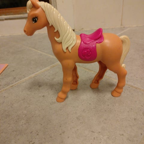 Barbie lekehest med beige kropp og rosa sal og grime. Lekeutstyr egnet for barn, designet for lek og rollelek. Eller som samleobjekt du bestemmer selv.