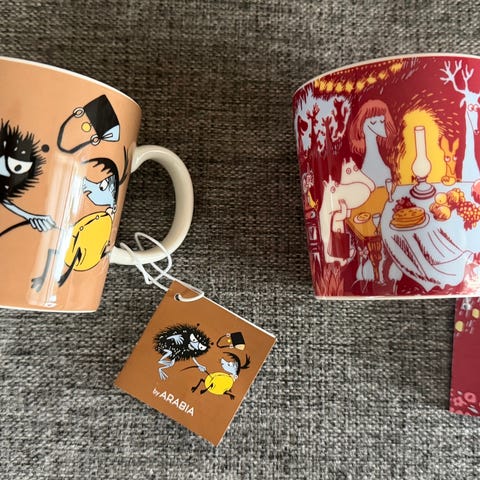 Utgåtte mummikopper «Sniff» (2014-2022) og «Stinky» (2001-2021) selges samlet til 849 kr. De er i perfekt stand, ubrukte med etiketter. De har bare stått i skap.