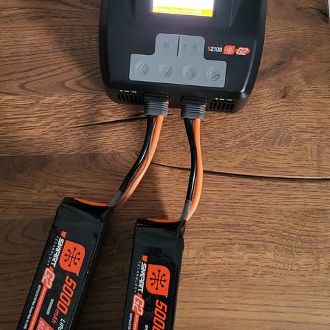 God lader med to utganger 2x100W / 12A. XT60 inngang - EC5 overgang følger med. Balanseringsbrett til begge ladeportene følger med.