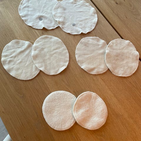 Lite brukt. Det ene har et lite hull, se bilder. Ingen flekker. Noen ser litt rufsete ut i kantene, men de blir de fort i vask.