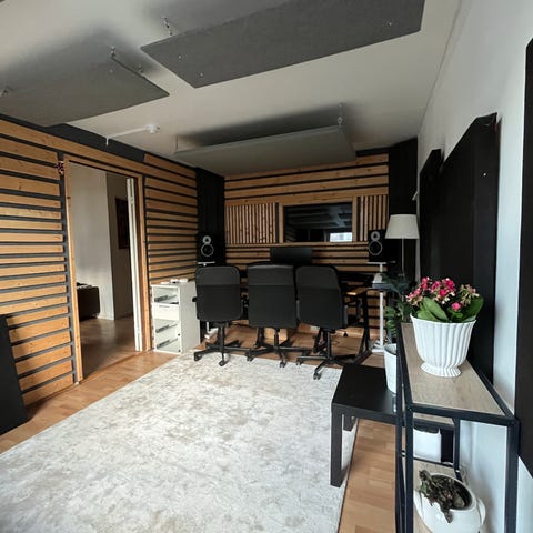 Vi tilbyr utleie av vårt profesjonelle studio på OLYP i Oslo — enten du trenger det for en enkelt dag eller over flere dager. Rommet er akustisk behandlet og optimalisert for lydinnspilling, og alt nødvendig utstyr er inkludert.
