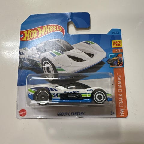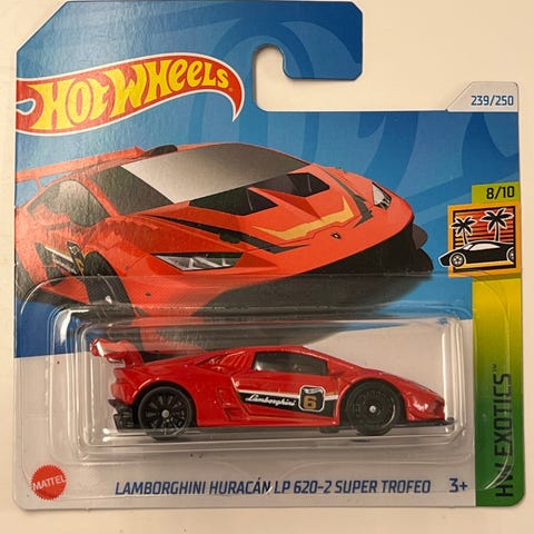 Hot Wheels McLaren GTR. Liten brett på kroken øverst på kortet.