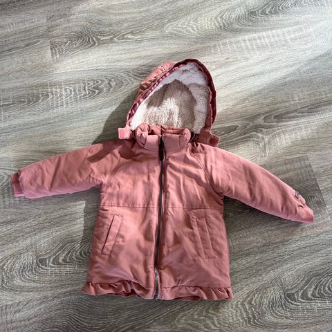 Newbie Jakke i rosa farge, størrelse 74, designet for jenter. Jakken har hette, glidelås foran og lommer med refleksdetaljer. Materialet er egnet for barn og gir beskyttelse mot værforhold.