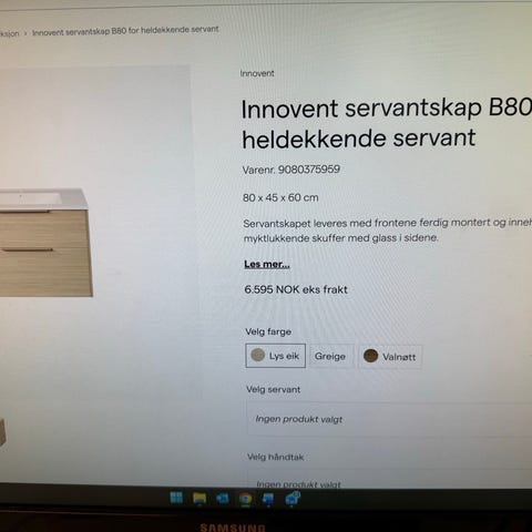 Selges pga at vi måtte lage plass til vaskemaskin på badet vårt og det var ikke nok plass. Tatt i bruk i september 2024 og fjernet i oktober. Servantskapet er ferdig montert og limt til vasken.
