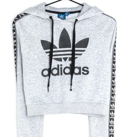 Adidas Andre hettegenser i størrelse S for damer. Genseren er gul og har hvite detaljer med Adidas-logo på ermene. Laget av materialer som gir komfort og varme, egnet for hverdagsbruk.