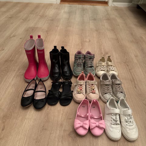 Godt blandet med forskjellige merker på barnesko, og et par voksen sko