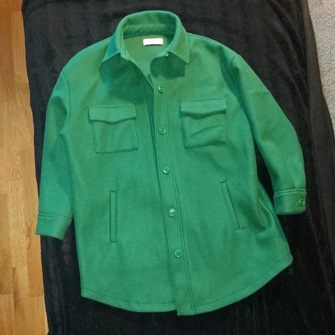 Selger en veldig fin semsket liggende jakke i fargen lys grå. Jakken har gått litt opp i sømmen som vist på bildet.