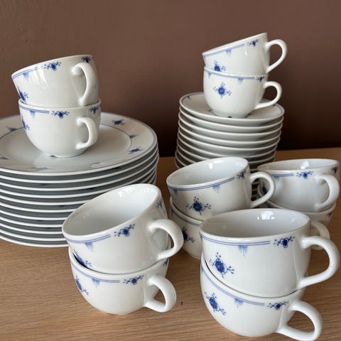 Nydelig Maxi strå i blå servise, designet 1887, selges. Som nytt. Det står bare i skapet.
