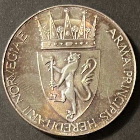 Harald og Sonja Minnemynt utgitt 22. august 1968. Mynter er laget i gull og er innkapslet for beskyttelse. Motivet viser portretter av Harald og Sonja på den ene siden og det norske riksvåpenet med kongekrone på den andre siden.