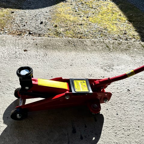 - 1x garasjejekk fra Biltema, kapasitet 2t, løftehøyde 135- 335mm.. Brukt den noen ganger og har fungert bra til hjulskift.