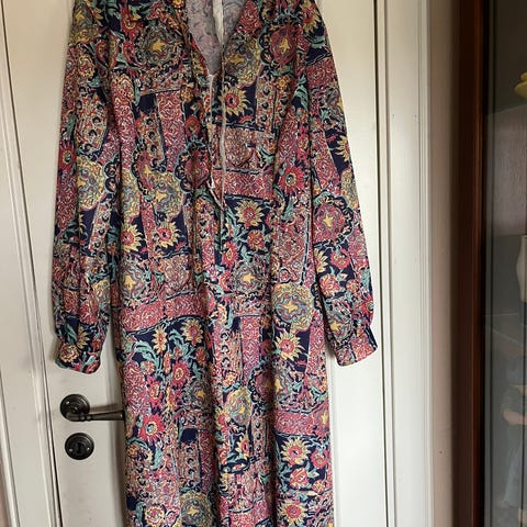 Hel og pent brukt kjole. Jeg har selv kjøpt den i en brukt butikk. Størelseslapp og merke er ikke tydbart, så den er tydeligvis blitt brukt en del, men den fremstår like hel og fin og uten annen slitasje .