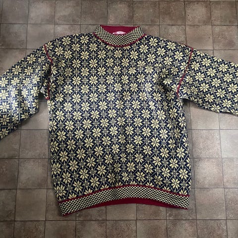 Hjemmestrikket, myk og varm. Klør ikke. 100 %. Str XL. Farger: kjølig blå, grønn og grå/beige.