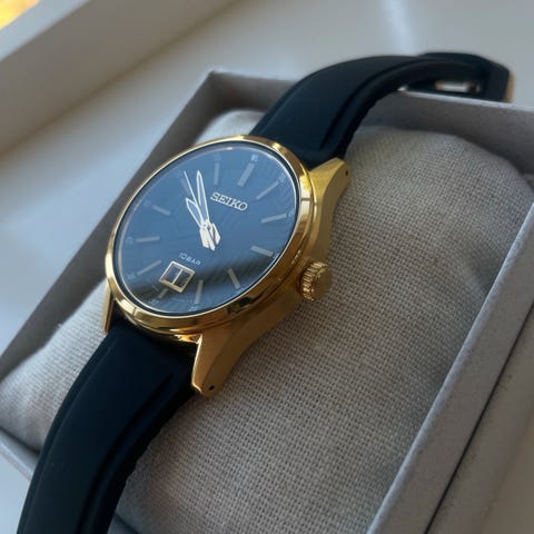 Klokken går presist, og Seikos klassiske design gjør den like fin til dress som til hverdagsbruk. Leveres på original stållenke med foldespenne.