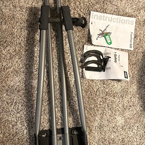 Selger 2 stk. Thule FreeRide sykkelholdere/Takstativ – klassikeren fra Thule som gjør det enkelt å frakte sykkelen trygt på taket.