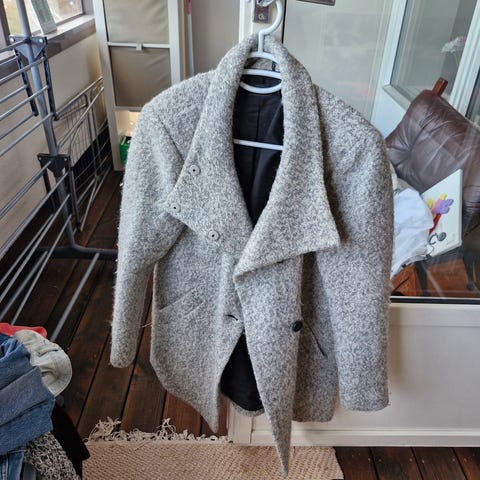 Just Female flerfarget ullkåpe/vinterjakke i størrelse S. Kåpen har et rutemønster med fargene grønn og rød.