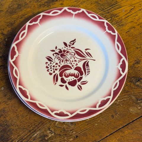 2 stk tallerken, den ene med tekst "Gi oss i dag vårt daglige brød. " Pris kr 200,-.